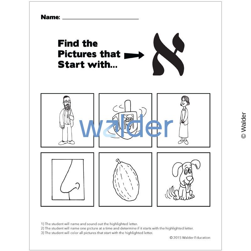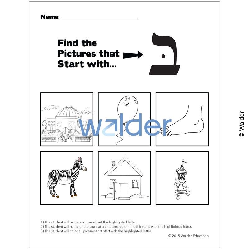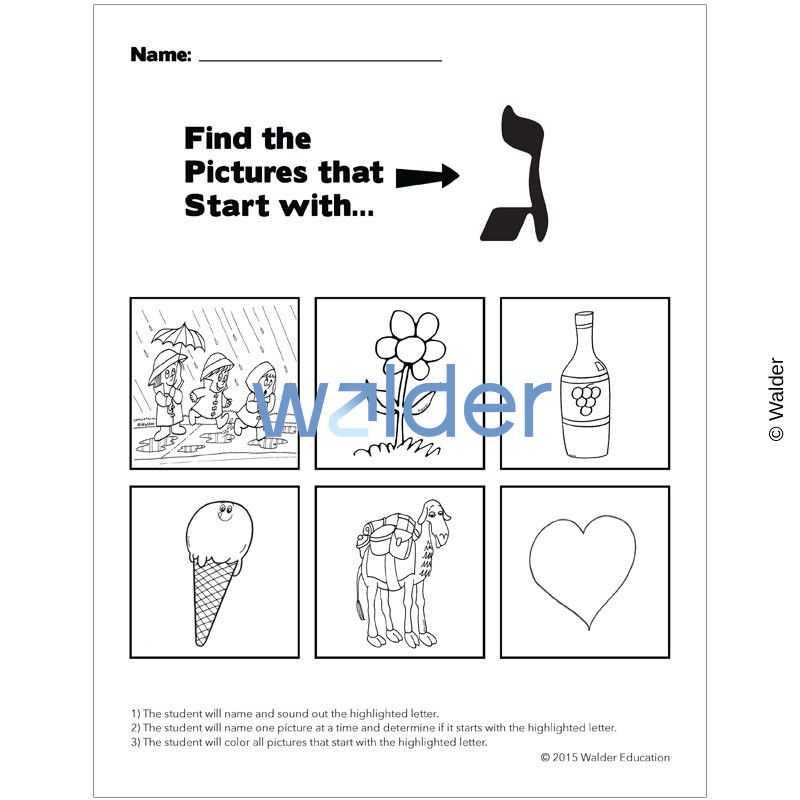 | Goals and Objectives: | The student will reinforce his/her Alef Beis and sound recognition by finding and coloring the pictures that start with the highlighted letter. |