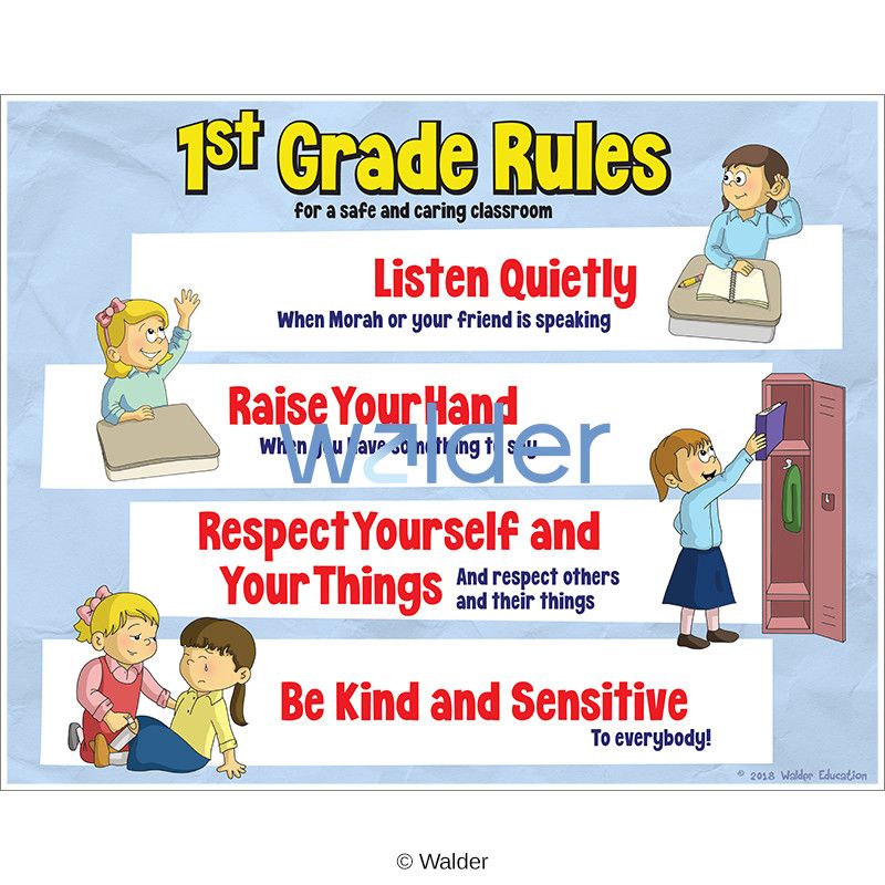 Remind your students of the 4 basic rules every classroom needs to create a safe and caring learning environment with this illustrated poster. When students listen quietly, raise their hands, respect themselves and their things, and are kind and sensitive to others, they can be assured of a happy, successful year. Use this poster to introduce classroom rules at the beginning of the school year and to remind students of the rules as needed.