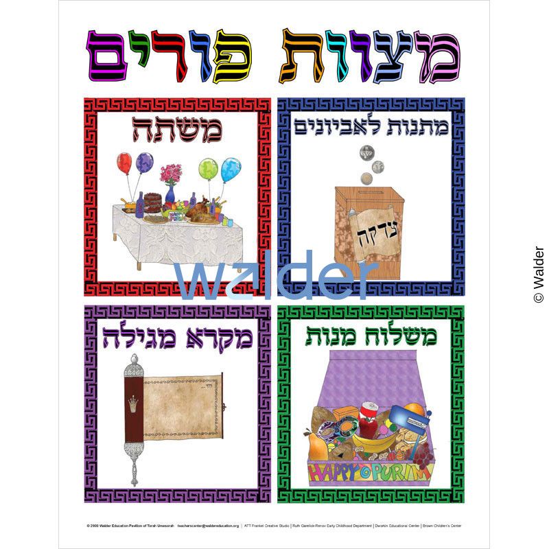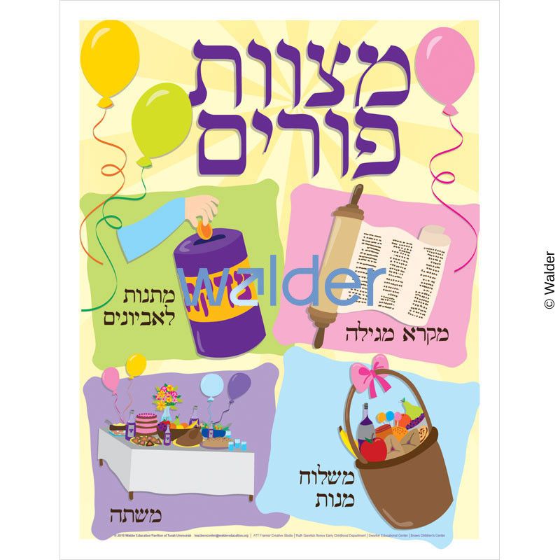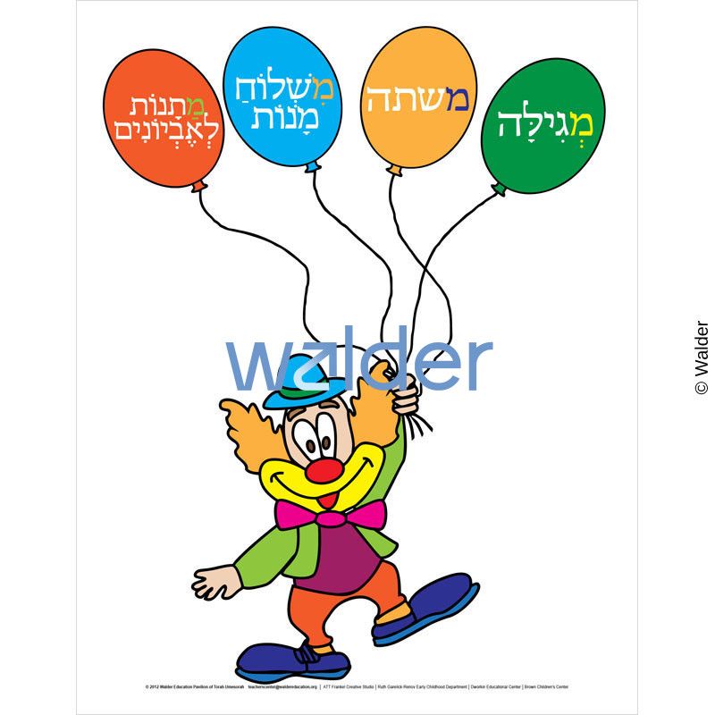 Let the adorable clown holding four balloons, which each contain the name of one of the mitzvos of Purim, introduce your students to the mitzvos of the day while decorating your classroom for the month of Adar.