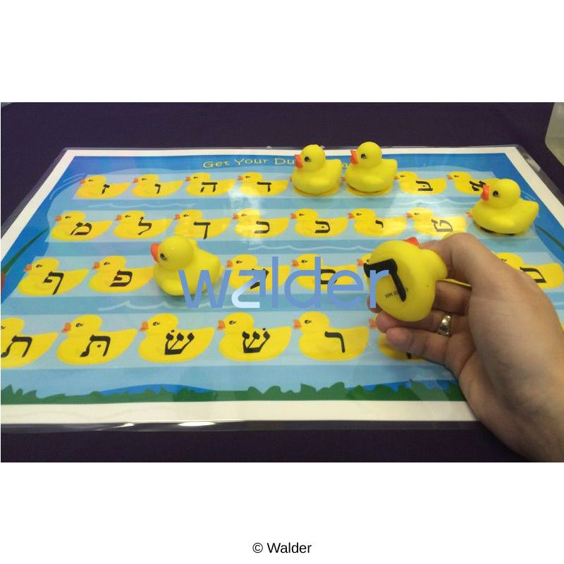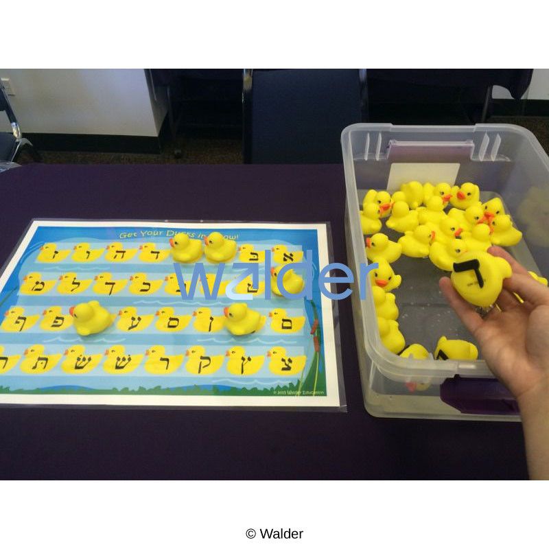 Goals and Objectives: The student will match the Alef Beis letters on the rubber ducks to the ones on the mat. They will learn Alef Beis recognition.