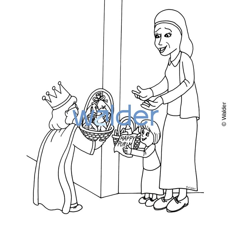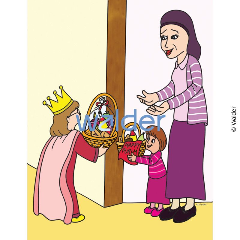 The Walder Education Pavilion brings Jewish education to life with these Purim clipart illustrations and images. Dress up the classroom, decorate student pages, and create activities or gifts. These adorable and fun drawings capture the essence of the holiday. Pictured: Giving Shalach Manos