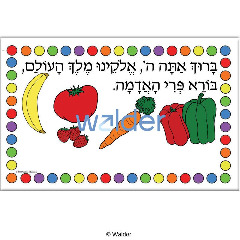 A beautiful and practical Haadamah placemat, part of a delightful series of Brachos placemats, which was created with the busy teacher in mind. It is what we call a 1-2-3 project: 1. Color. 2. Glue. 3. Laminate. Of course, detailed instructions and a template are included.