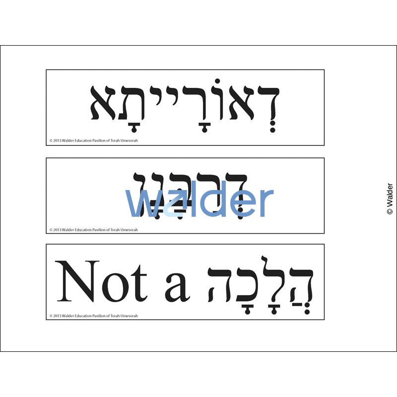 This kinesthetic, fast-paced halachah review game will reinforce the understanding of any halachah lesson. After teaching about different halachos and categorizing them by deoraisa (Torah commandments), derabanan (rabbinical ordinances), and not a halachah (minhag), students will enjoy this review game as an informal assessment of their knowledge. This game is suitable for any class size.