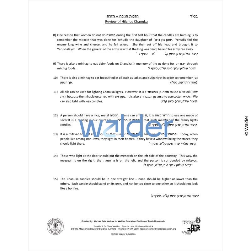 This series provides a comprehensive review of the history, laws and customs of Chanukah, includuing English translations of the Kitzur Shulchan Aruch. Pictorial depictions and English text on worksheets help the students organize and reinforce their knowledge.