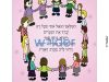 Sign featuring girls in a circle holding hands on a starry pink background. In the middle of the circle are the words for ‘Hamalach Hagoel’ in black hebrew type.
