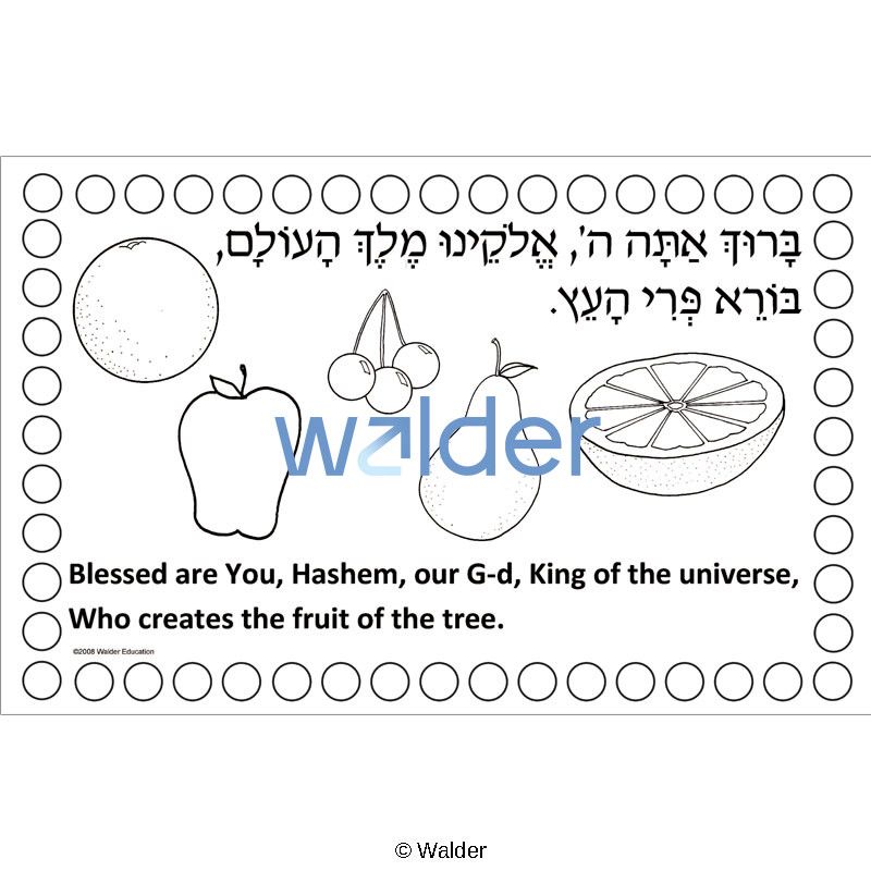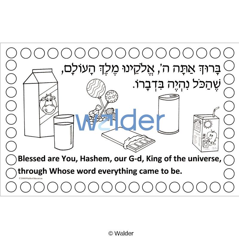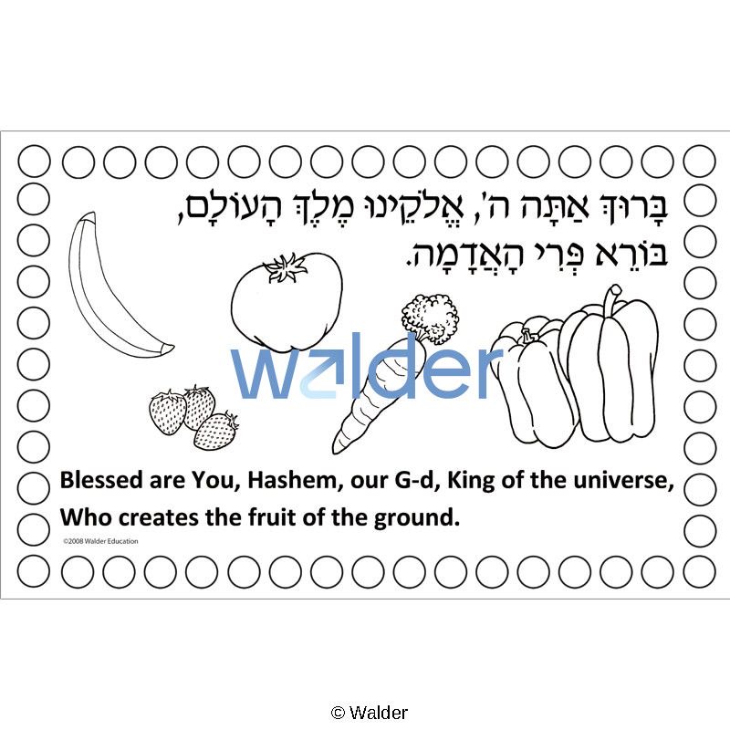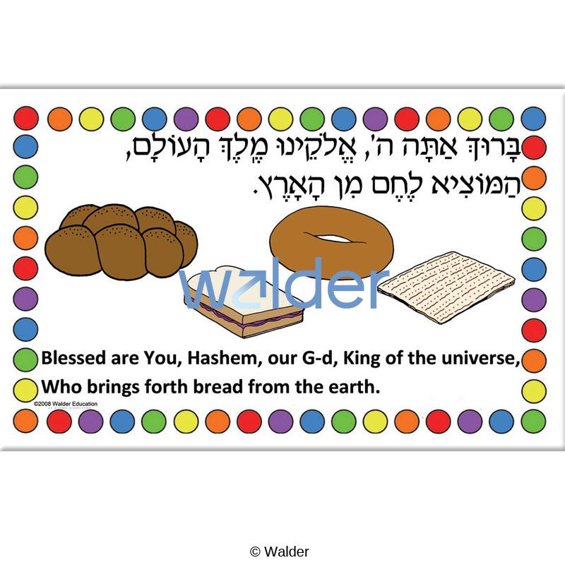 A beautiful and practical bi-lingual Hamotzi placemat, part of a delightful series of Brachos placemats, which was created with the busy teacher in mind. It is what we call a 1-2-3 project: 1. Color. 2. Glue. 3. Laminate. Of course, detailed instructions and a template are included.