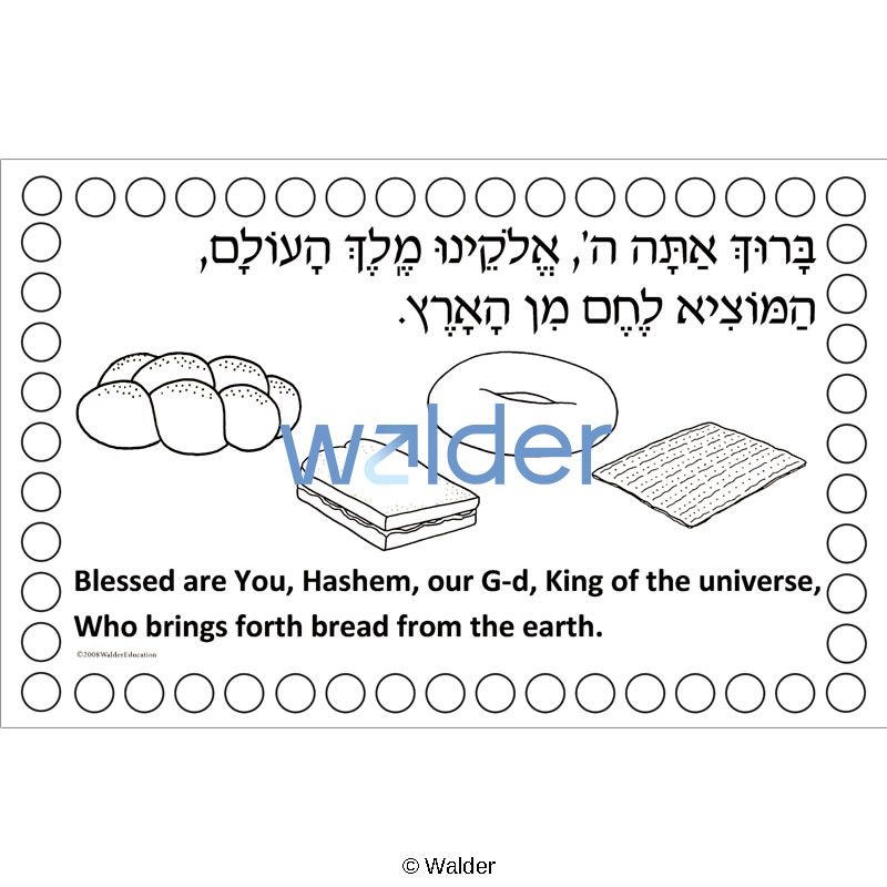| Goals and Objectives: | The student will develop their fine motor skills and hand-eye coordination while learning and reinforcing the recitation of Hamotzi before eating bread products. The coloring of the placemat with the dots can be used as a tool for building patterning and sequencing skills. (For guidance see alternate uses.) |