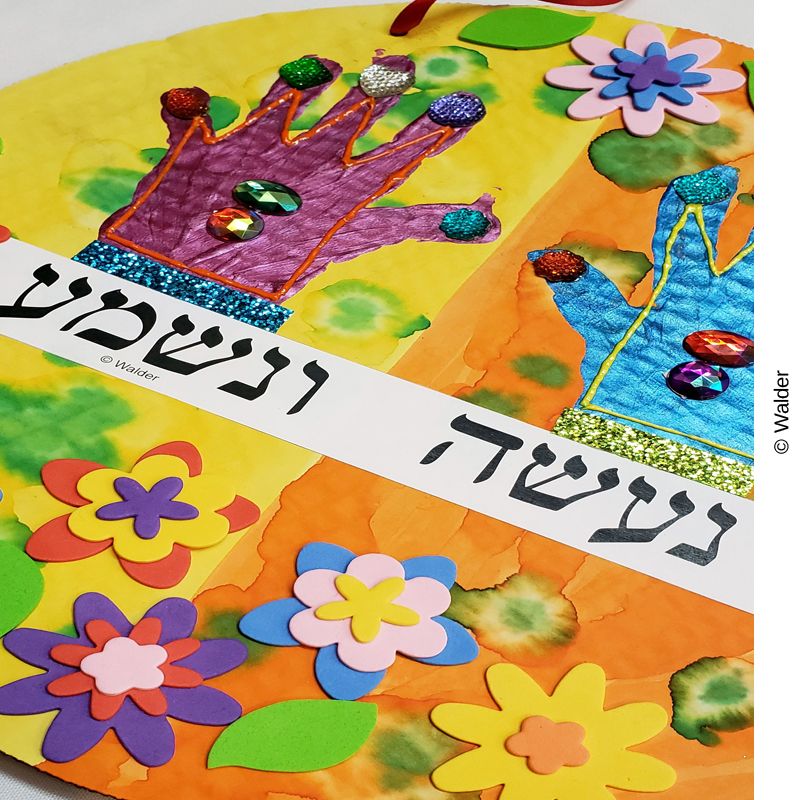Create a feeling of anticipation, personal Jewish pride, and responsibility in your students as they fashion handprint crowns for their Naaseh Venishma necklace.