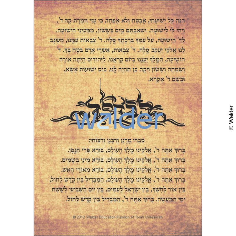 Sign featuring the full havdalah on a parchment background with the word ‘Havdalah’ in ornate hebrew letters in the middle.