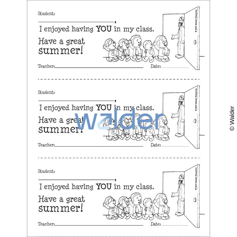Each child should leave the classroom with a positive feeling at the end of the year. By distributing this personalized card, the child will feel like he made a contribution to the class and how much the teacher enjoyed teaching him that year.