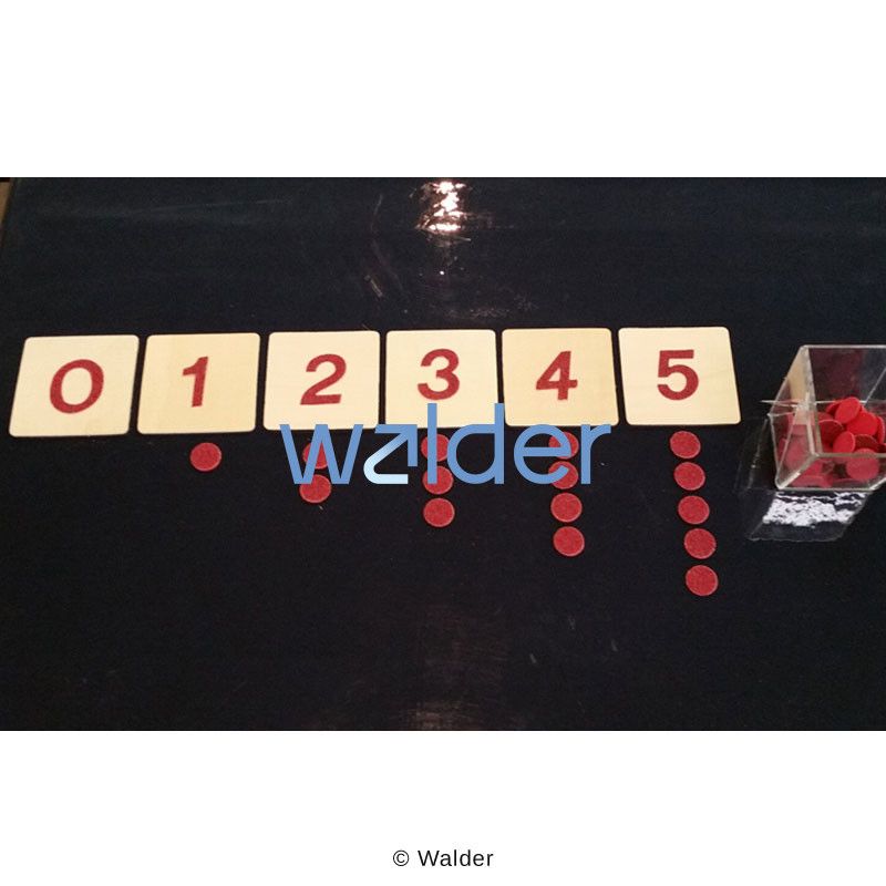 The students will count out the correct number of sandpaper circle markers to match the number designated. The students will learn that a number symbol represents an amount and they will learn each number symbol 0 through 10 and be able to count each amount, 1 through 10.