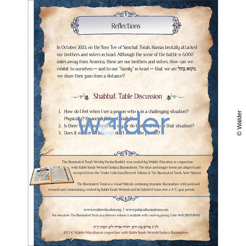 The Illuminated Torah Parsha booklets are geared to support different learning styles and encourage students to engage with the parsha in new ways. To appreciate the full scope of the artwork, the booklet is best printed in color.