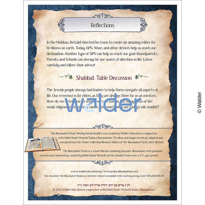 The Illuminated Torah Parsha booklets are geared to support different learning styles and encourage students to engage with the parsha in new ways. To appreciate the full scope of the artwork, the booklet is best printed in color.
