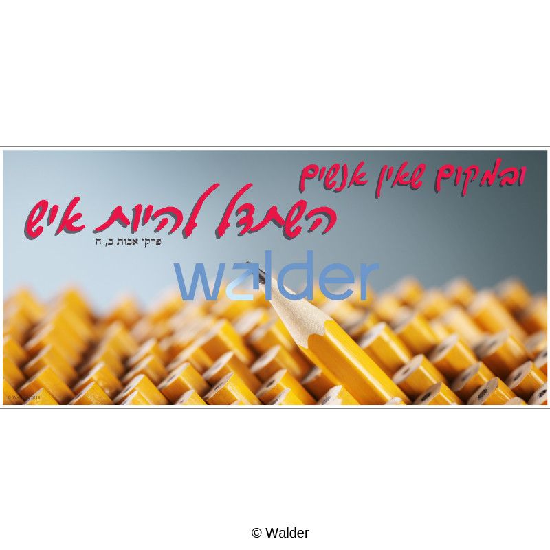 A school-wide banner with a picture of many unsharpened pencils and one sharpened pencil sticking out, with the phrase “אם אין אנשים השתדל להיות איש” written below. The banner brings out the point that when no one is taking charge or responsibility, you should step up to the task. Can be used in conjunction with a project on taking responsibility for one’s actions, sticking up for one’s self, no bullying, answering אמן loudly, and many more, or just to beautify the hallways and/or classrooms of the school.