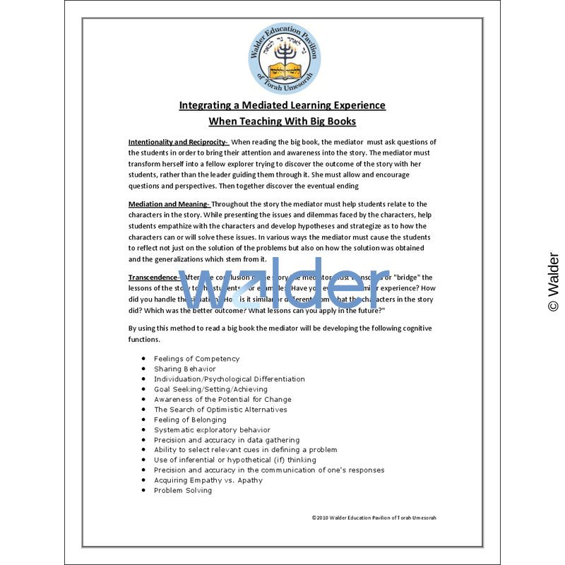A teachers guideline based on the Feuerstein Method for how to integrate a mediated learning experience when teaching with big books. Possible uses: Teachers will use as a guideline to help create the most beneficial learning enviroment for their students.
