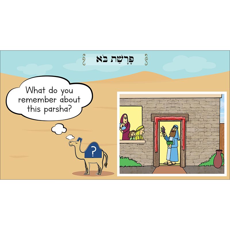 Maximize engagement and make parsha study come alive with our groundbreaking Interactive Parsha. The entire parsha, along with selections from the Midrash and Rashi, is covered in a series of interactive slides with easy-to-read text supported by our popular parsha pictures. Included are fill-in-the-blanks, vocabulary, games and activities, and review and discussion questions. Interactive Parsha can be used with any interactive display, projector, or laptop and comes with a user guide, a question-and-answer key, and a template for creating your own take-home parsha question sheet.