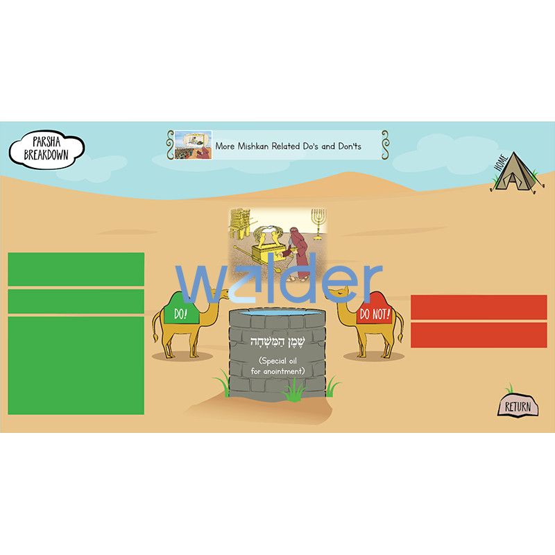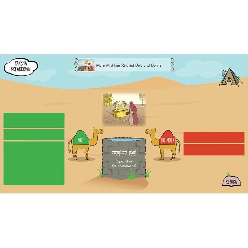 Maximize engagement and make parsha study come alive with our groundbreaking Interactive Parsha. The entire parsha, along with selections from the Midrash and Rashi, is covered in a series of interactive slides with easy-to-read text supported by our popular parsha pictures. Included are fill-in-the-blanks, vocabulary, games and activities, and review and discussion questions. Interactive Parsha can be used with any interactive display, projector, or laptop and comes with a user guide, a question-and-answer key, and a template for creating your own take-home parsha question sheet.