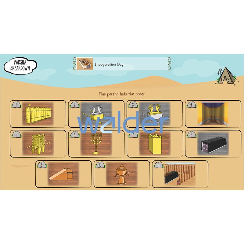 Maximize engagement and make parsha study come alive with our groundbreaking Interactive Parsha. The entire parsha, along with selections from the Midrash and Rashi, is covered in a series of interactive slides with easy-to-read text supported by our popular parsha pictures. Included are fill-in-the-blanks, vocabulary, games and activities, and review and discussion questions. Interactive Parsha can be used with any interactive display, projector, or laptop and comes with a user guide, a question-and-answer key, and a template for creating your own take-home parsha question sheet.