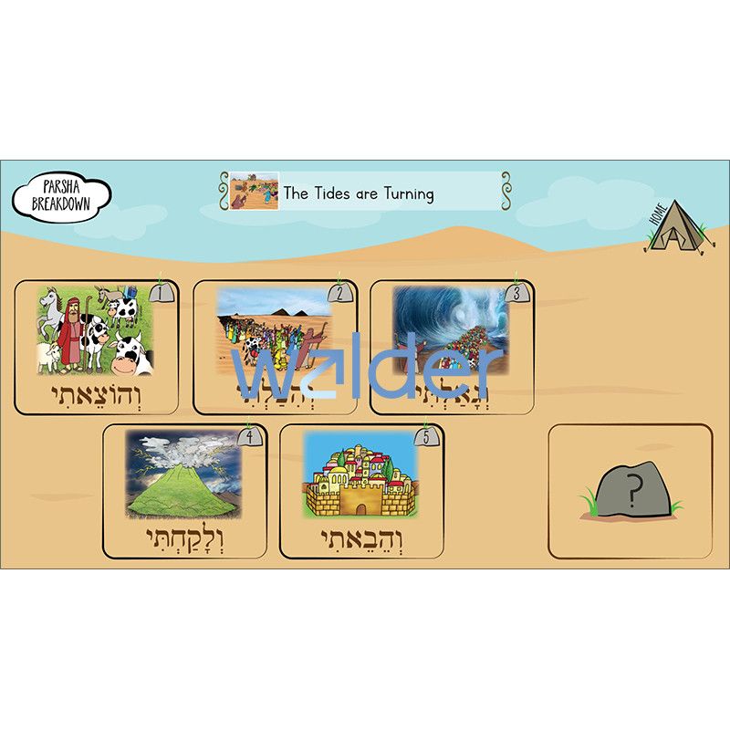 Maximize engagement and make parsha study come alive with our groundbreaking Interactive Parsha. The entire parsha, along with selections from the Midrash and Rashi, is covered in a series of interactive slides with easy-to-read text supported by our popular parsha pictures. Included are fill-in-the-blanks, vocabulary, games and activities, and review and discussion questions. Interactive Parsha can be used with any interactive display, projector, or laptop and comes with a user guide, a question-and-answer key, and a template for creating your own take-home parsha question sheet.