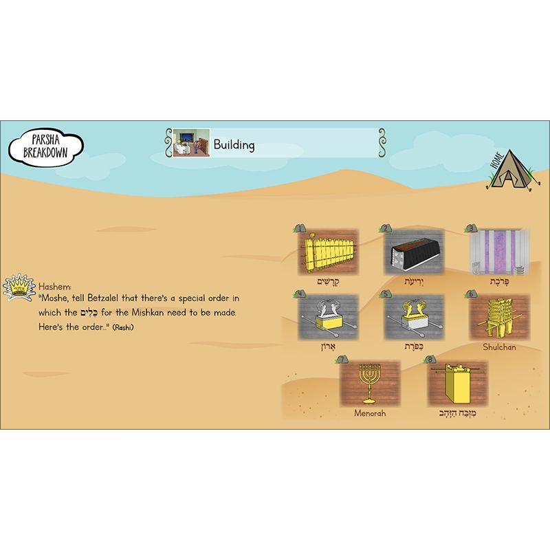 Maximize engagement and make parsha study come alive with our groundbreaking Interactive Parsha. The entire parsha, along with selections from the Midrash and Rashi, is covered in a series of interactive slides with easy-to-read text supported by our popular parsha pictures. Included are fill-in-the-blanks, vocabulary, games and activities, and review and discussion questions. Interactive Parsha can be used with any interactive display, projector, or laptop and comes with a user guide, a question-and-answer key, and a template for creating your own take-home parsha question sheet.