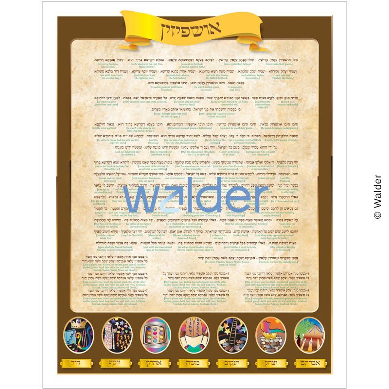 This interlinear translation of Seder Ushpizin will make your invitation to our honored guests in the sukkah more meaningful, as it translates the text into English. It can also serve as an elegant enhancement to the decor of your sukkah or classroom.