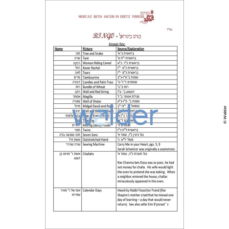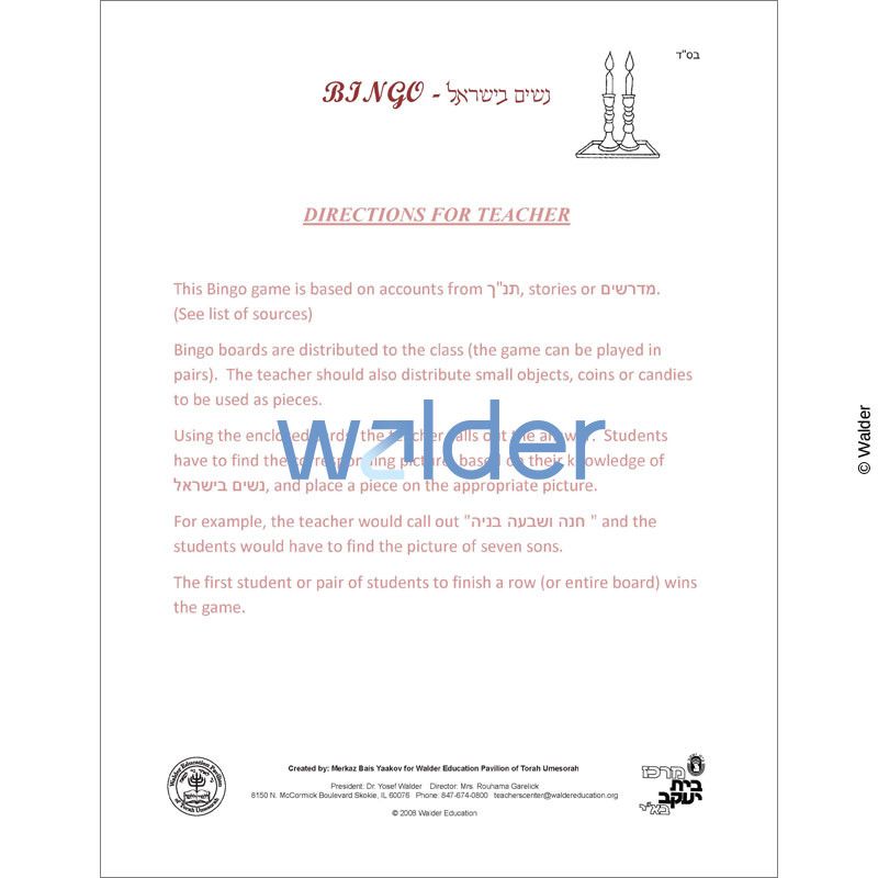 This Bingo game is an excellent visual review of of the contributions of Jewish women to our nation’s development and history. Students will match photographic Bingo cards with events in the lives of great Jewish women. An addional set of call cards provides a more advanced class with questions that serve as clues to the correct answers.