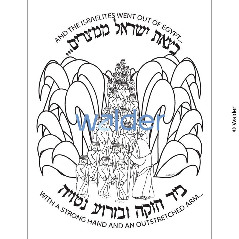 A beautifully illustrated coloring page which depicts Moshe leading the Jews across the sea. Possible Uses: 1) Use as a coloring sheet during the month of Nissan or as an addition to the take home Haggadahs created in class. 2) Use as a coloring sheet for Parshas Beshalach. 3) Cut out oval. Color with permanent marker and Mod Podge onto the bottom of a glass platter to create a decorative Pesach serving platter.