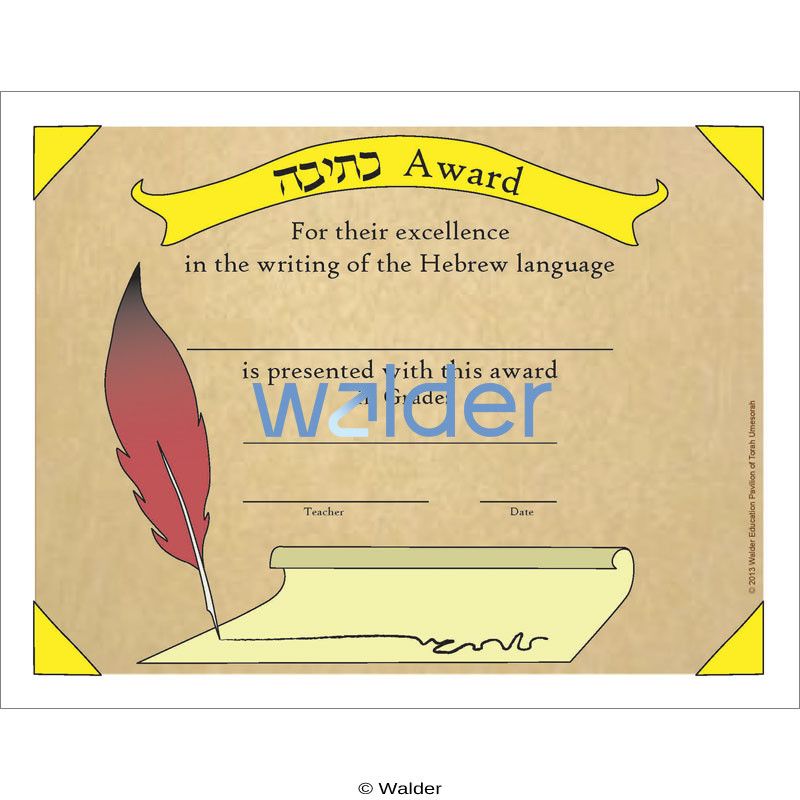 This award can be granted be used to acknowledge boys excellent performance in kesivah. It allows each student to receive individual recognition for his achievement. Upon receiving the award, your student will walk away with a sense of pride and accomplishment.