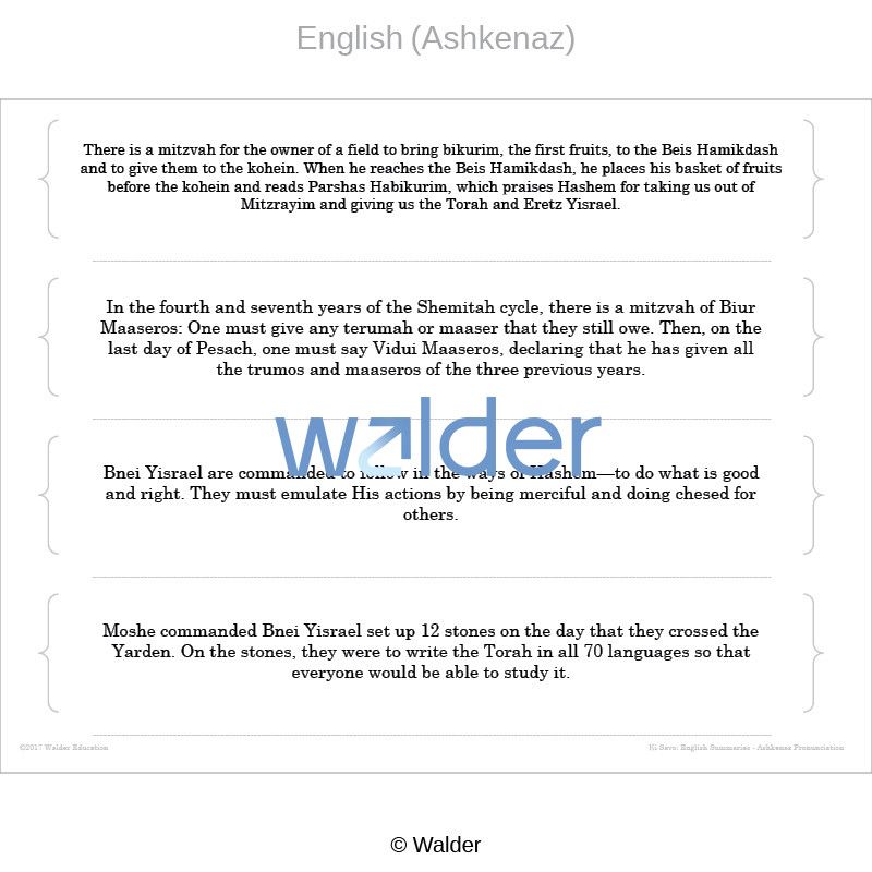 | Subject(s): | Tanach, Torah: Chumash and Parsha, Devorim, Ki Savo |