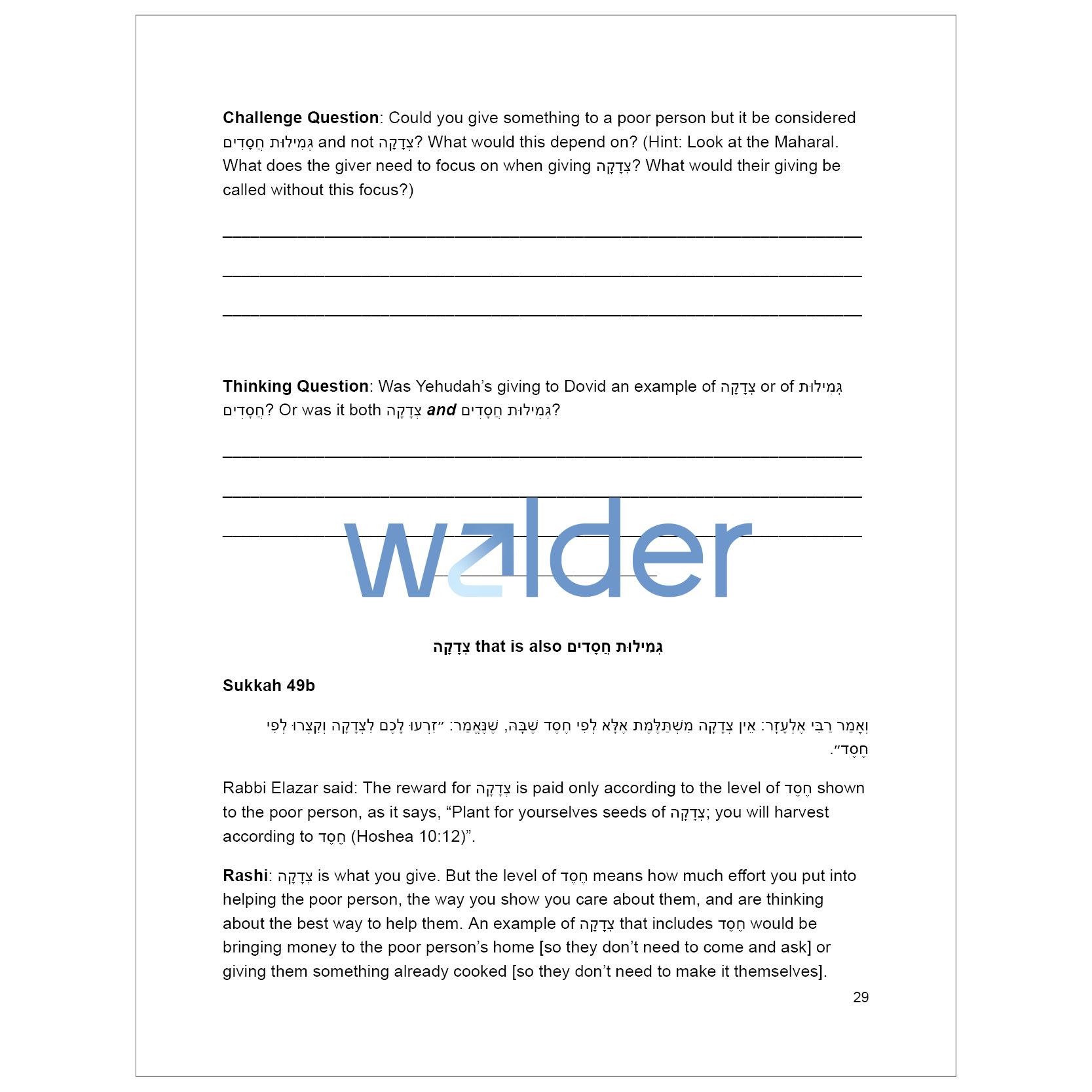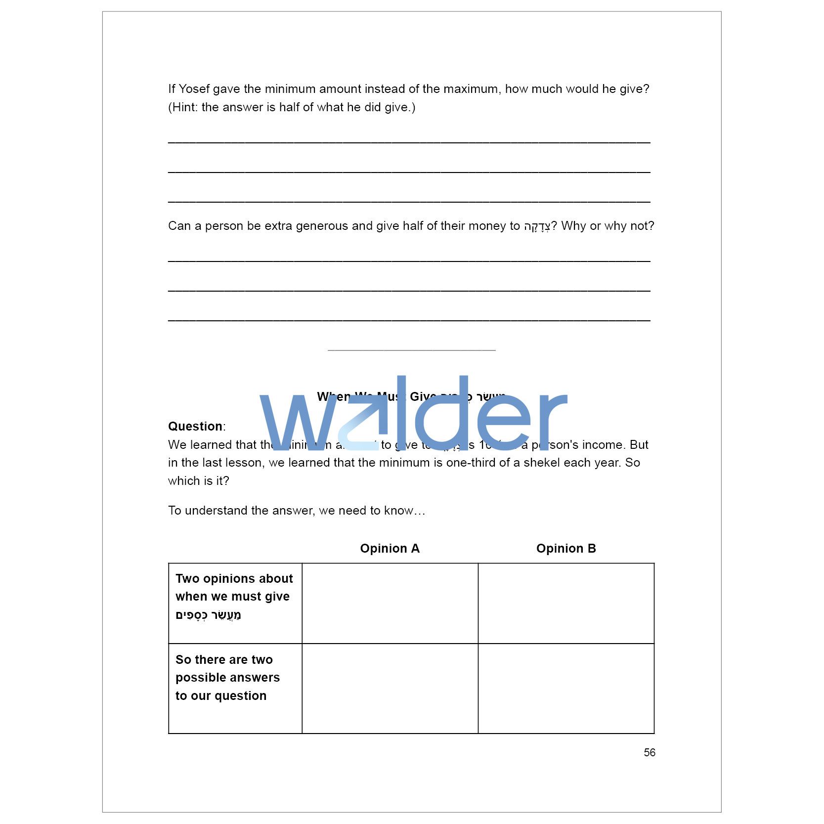 Unit 3 covers the concepts of chesed (kindness) and tzedakah. Students will develop a deep understanding of the roles that chesed and tzedakah play in all areas of our lives. Lesson 5 of the unit also features a detailed explanation of the hows and whys of maaser (giving a tenth or more of our income to tzedakah).