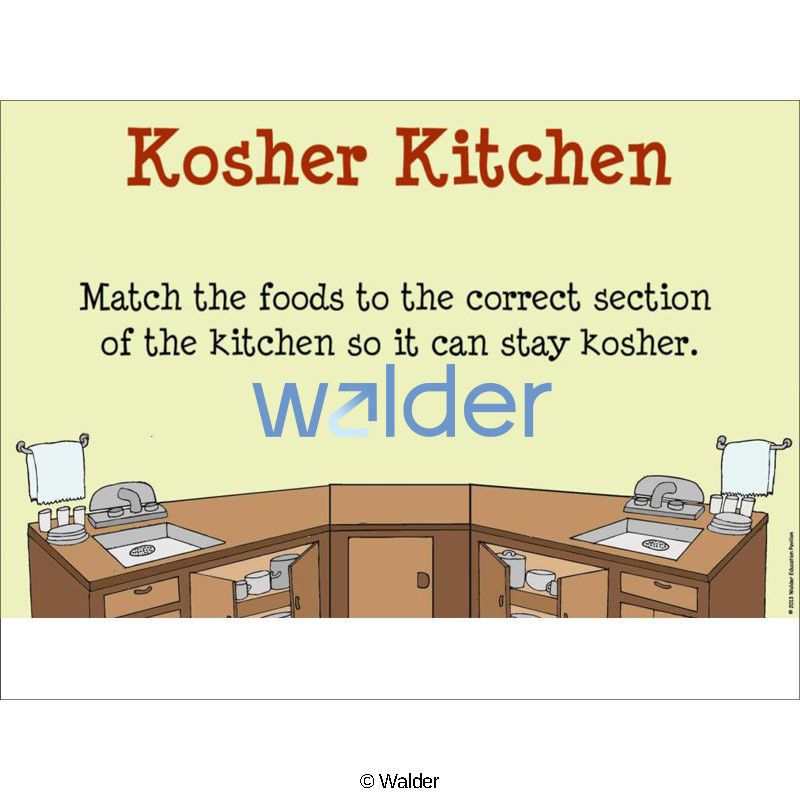This interactive SmartBoard game reinforces students’ knowledge of the laws of kashrus (separating between milk, meat and parve foods) to keep a kosher kitchen. After learning about the different types of foods and the need to separate them, the students sort them into the correct section of the kitchen, either milk, meat or parve so that they do not mix. This SmartBoard game is a hands-on activity to learning and will allow students to test themselves and their knowledge of the kosher food categories.
