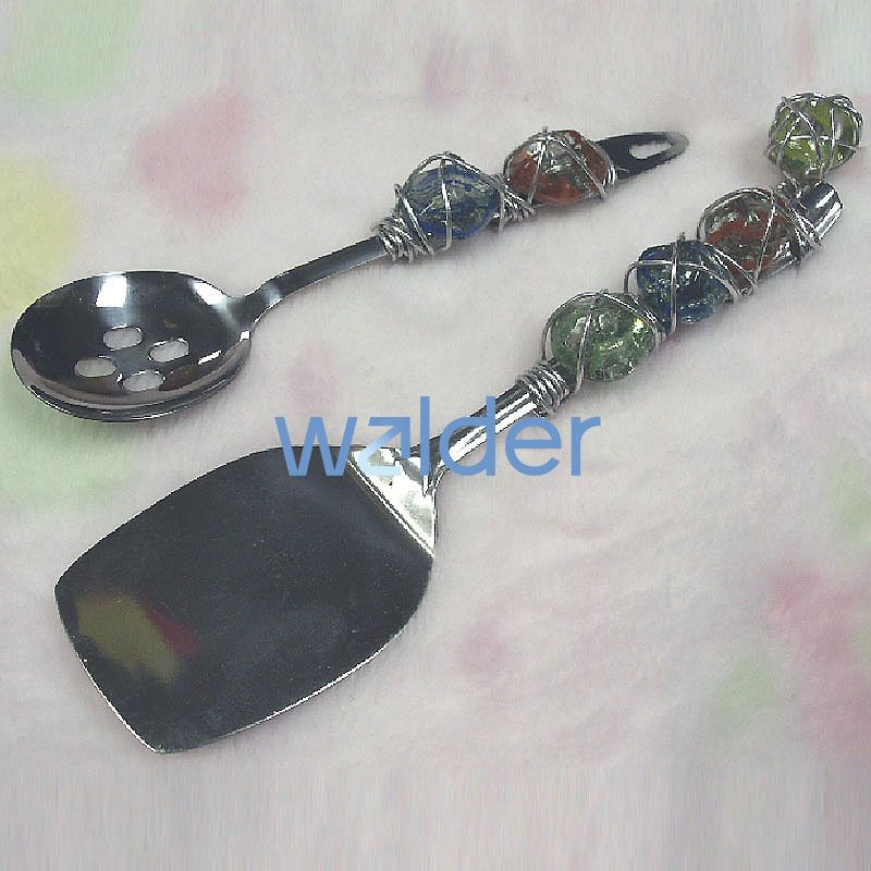 These beautiful latke servers made with colored stones and real serving pieces will enhance any Chanukah dinner table.
