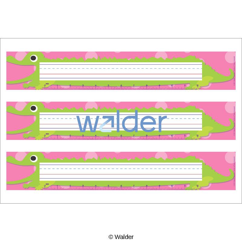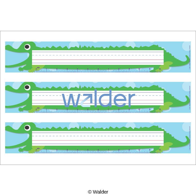 These crocodile-themed desk strips will bring visual style to your classroom and your students’ desks. Use them as place cards for student seating by writing each student’s name on a desk strip and attaching it to his or her desk. You may choose to write the names in any language and form of lettering depending on the age of the students. Desk strips help teachers learn student names and will make taking attendance and creating seating charts easier. They also include a ruler printed on the bottom.
