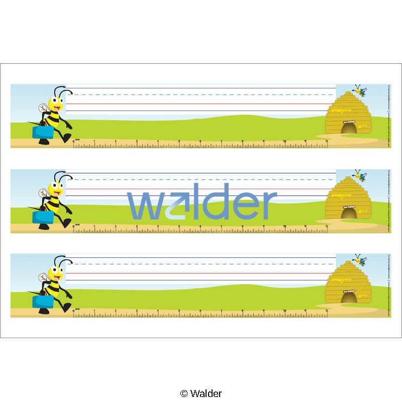 These desk strips, featuring bumblebee illustrations, are part of the “Let’s Get Buzzy” series. Use them as place cards for student seating by writing each student’s name on a desk strip and attaching it to his or her desk. Desk strips help teachers learn student names and will help with attendance taking and creating seating charts. .A ruler is printed on the bottom.