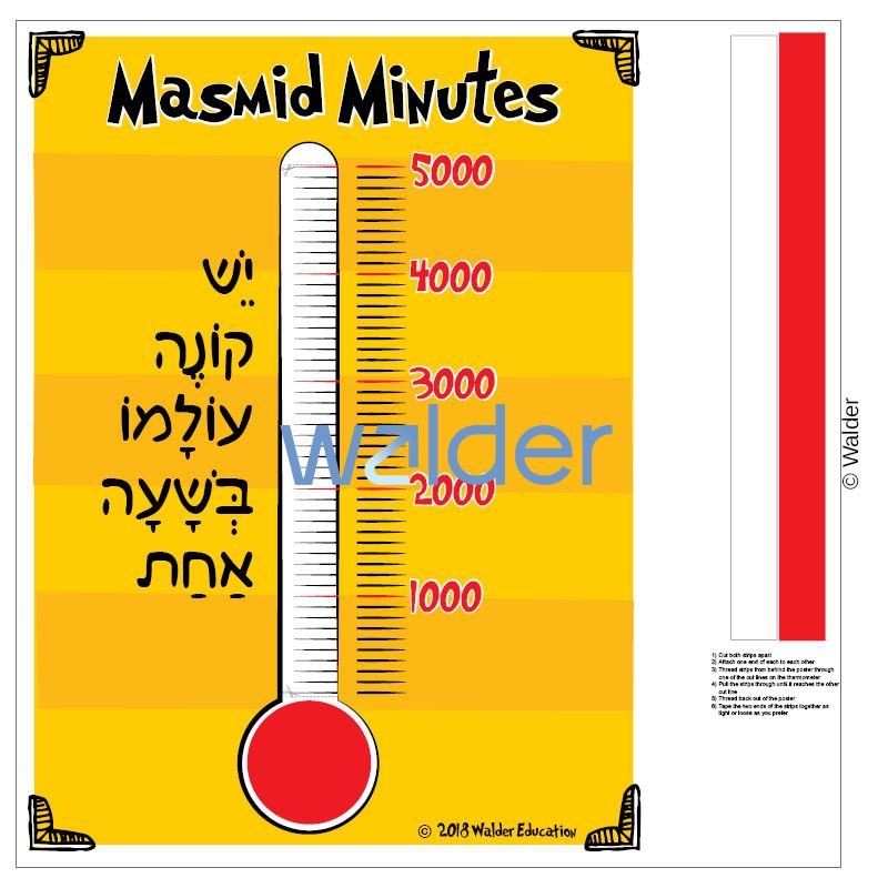 Make the drive for learning a full classroom incentive experience with this Masmid Minutes counter. As students learn, the thermometer is filled and when they reach the end, the class is rewarded with a prize. The banner will help students internalize that each minute of their learning earns them Olam Haba with the of the quote from Rabbi Yehudah Hanasi that says, “There is one who acquires his share in the World-to-Come in one moment” (Avodah Zarah 17b).