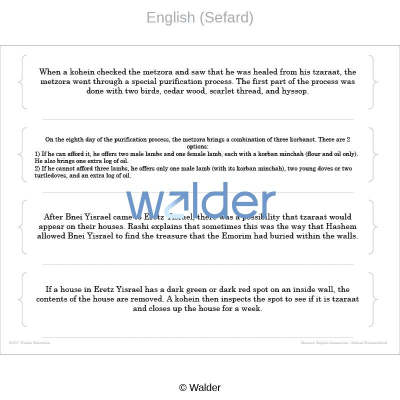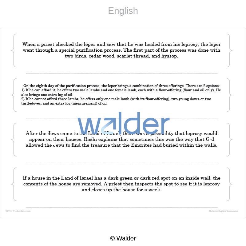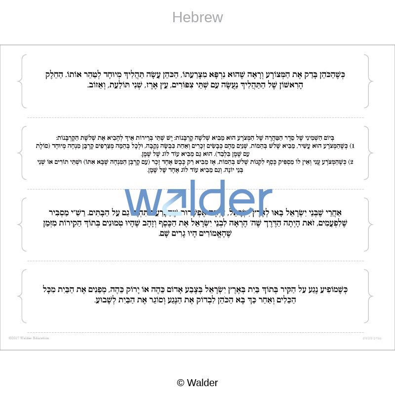 | Subject(s): | Tanach, Torah: Chumash and Parsha, Vayikra, Metzora |