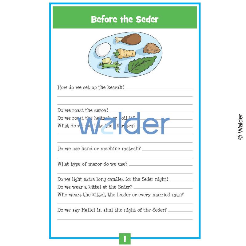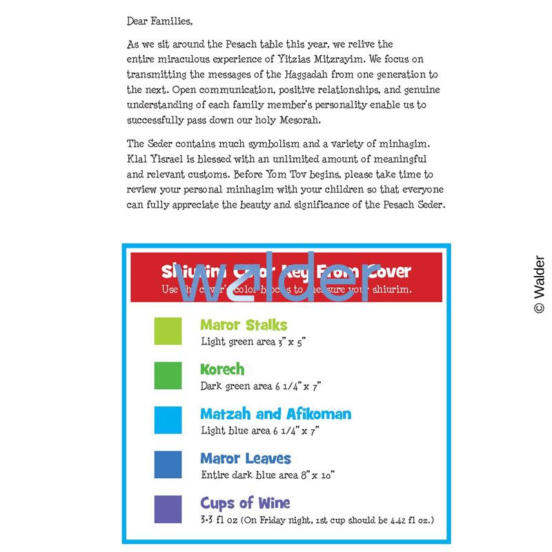 Preserve each family’s unique Pesach minhagim for future generations while strengthening your students’ self-concepts and family relationships. When filled out at home through parent-child discussions, this booklet will become a treasured source for maintaining the mesorah. It guides students through every aspect of preparation for and fulfillment of the mitzvos of the Seder. Extend the booklet’s benefits by having students share their differing customs and discover that there are “Shivim Panim Latorah” – seventy faces to the Torah. Even as we practice minhagim differently, we follow the same halachos.