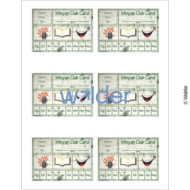 These beautiful Minyan Club cards, with room to affix students’ pictures, will allow you to recognize the students who consistently arrive on time and actively participate in minyan each month. Card-carrying members can be awarded special privileges and prizes throughout the year.