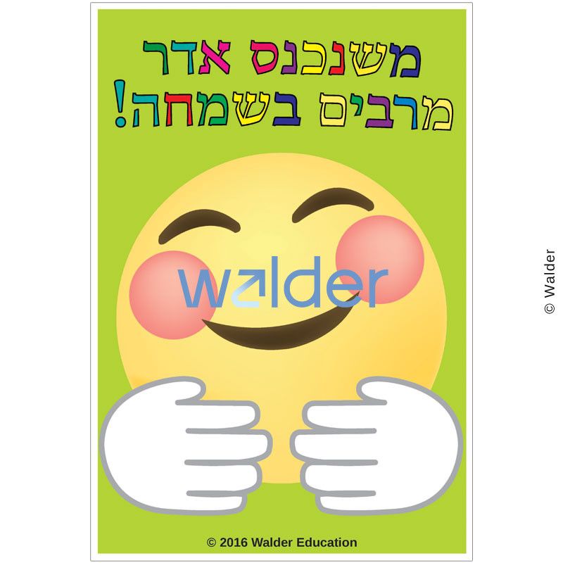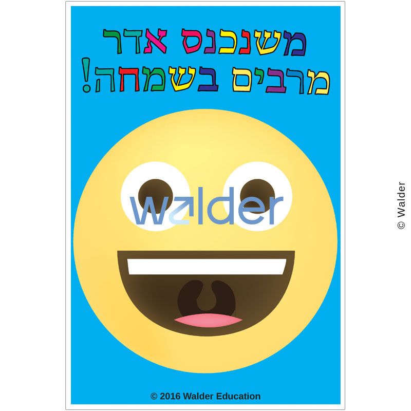 This set of colorful smiley face posters will set the tone for the month of Adar as it reminds your students of the maamar Chazal that states that joy increases as Adar begins. It can serve as a springboard for discussions about the spiritual seasons of the Jewish year and ways that your students can bring joy to others.