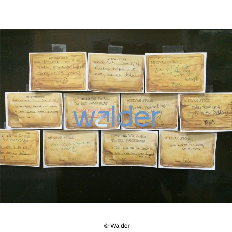 Use these Mitzvah Stone’s (Notes) to give special recognition to your student’s for a good show of middos. Reinforce positive behavior while giving the child something to be rightfully proud of. When put together, these stones will build a mini Kosel wall which reiterates the idea that our Mitzvos will help rebuild the Beis Hamikdash.