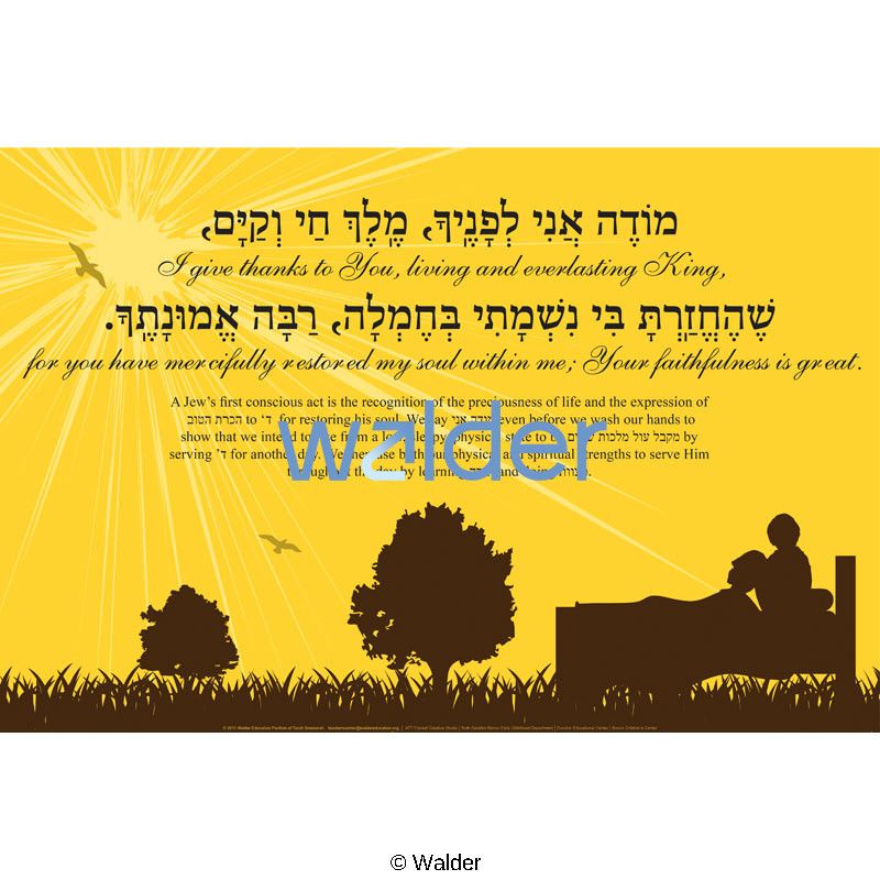 A illustrated modeh ani banner which describes the meaning of modeh ani. Includes definition and provides students with a greater understanding of the tefillah.