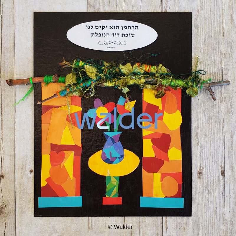 Create our mosaic sukkah with twig/ yarn schach to decorate your students’ sukkos while reviewing the source and reasons for the mitzvah of sitting in the sukkah. Use this project as a hook to teach the halachos that determine whether or not a sukkah is kosher and the reason behind the custom of decorating the sukkah. Students will also learn media and color choice as they choose reds, yellows, and oranges for the sukkah, and green yarn and twigs to depict the requirement that schach must be something that grew from the ground.