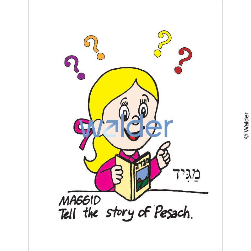 Children’s haggadah with the order of the seder both in Hebrew and English accompanied by a cute illustration. There are spaces to either glue a photo of the student acting out the steps or for their own drawings.