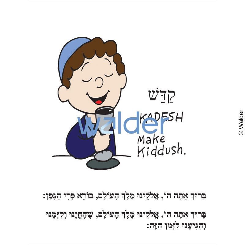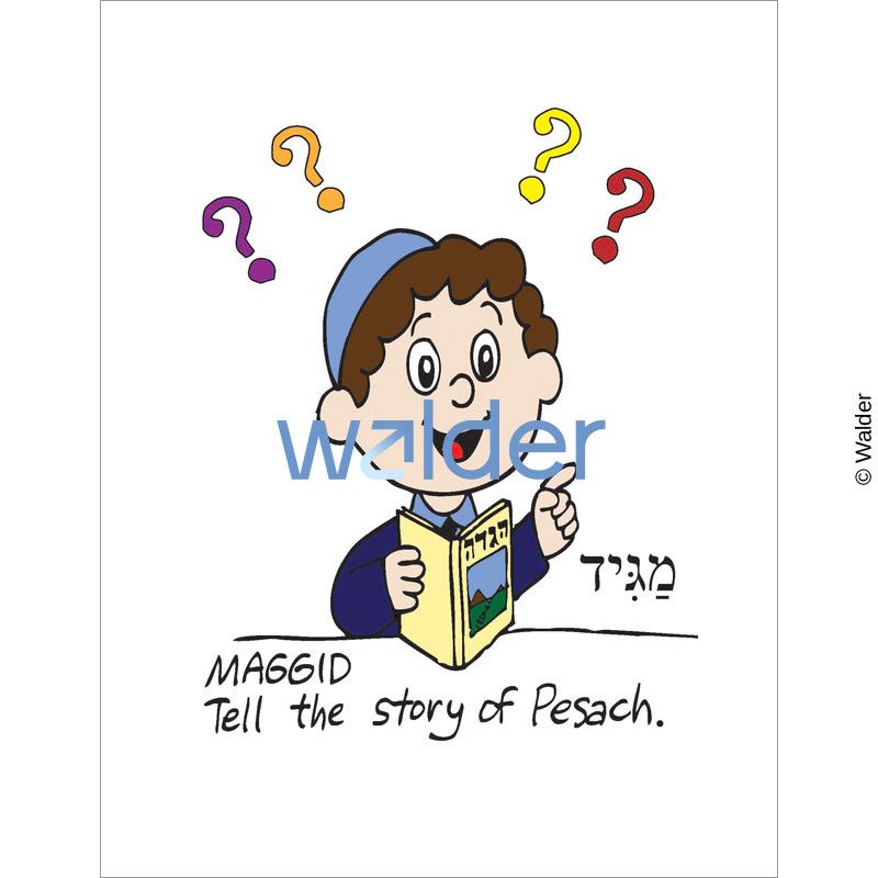 Children’s haggadah with the order of the seder both in Hebrew and English accompanied by a cute illustration. There are spaces to either glue a photo of the student acting out the steps or for their own drawings.