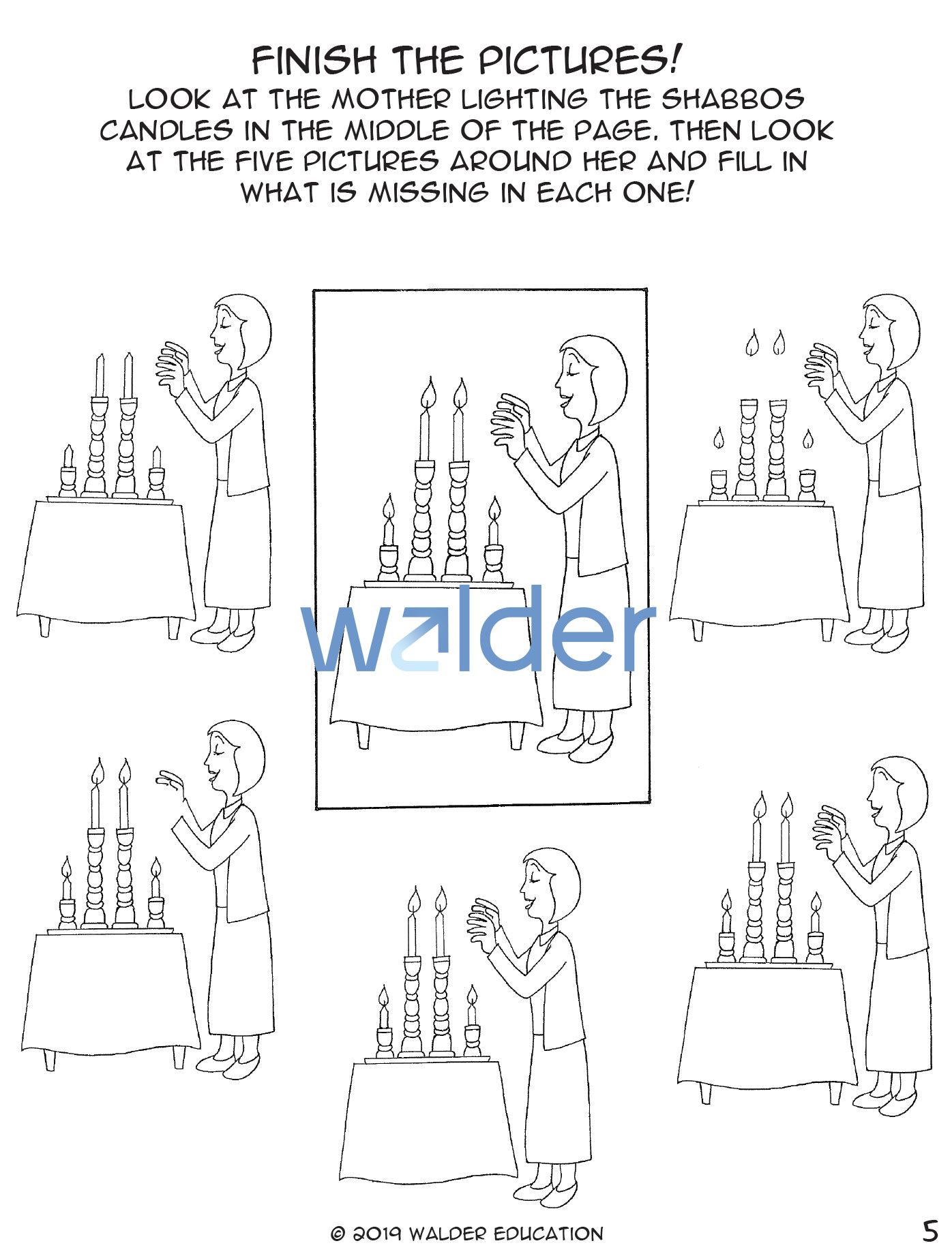 Draw basic pictures of Shabbos observances.