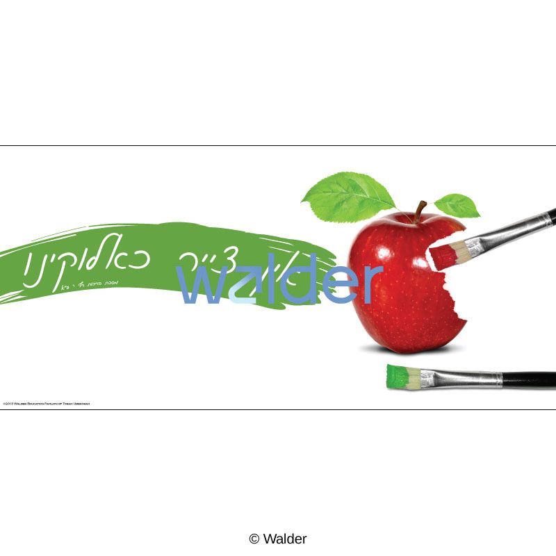 A banner describing the wonders of nature illustrated with an apple being painted into existance, and titled in Hebrew, ‘אין צייר כאלוקינו’, which is a quote from meseches brachos. This banner may be used to initiate classroom discussions on the topics of science or Jewish thought