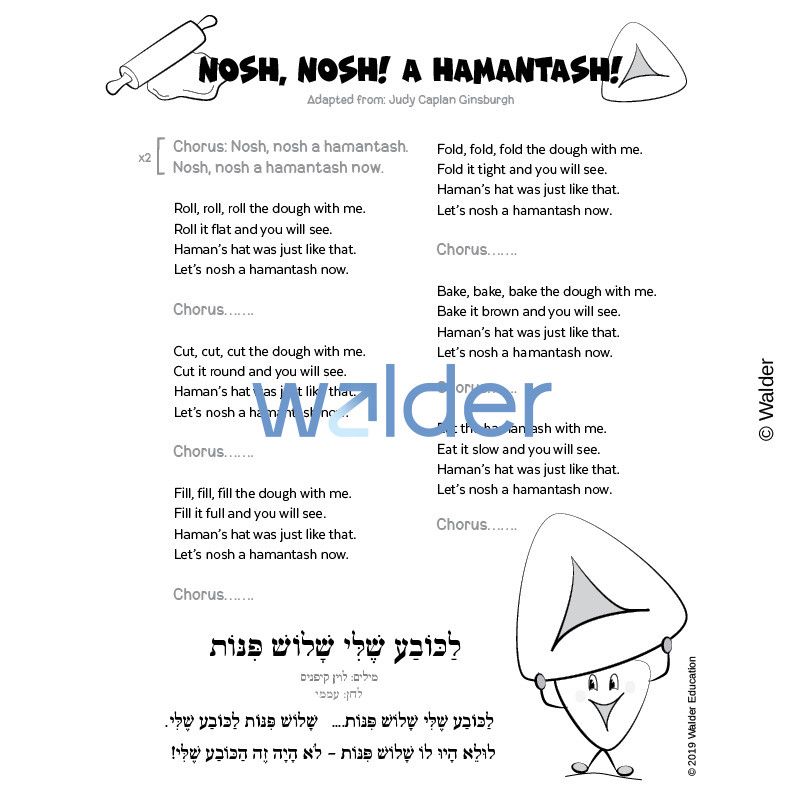 Use music and traditional tunes to teach your students about how the Hamantash is made and its shape. These songs will build your students’ language and self-control skills while helping them learn about the importance of this Purim cookie.