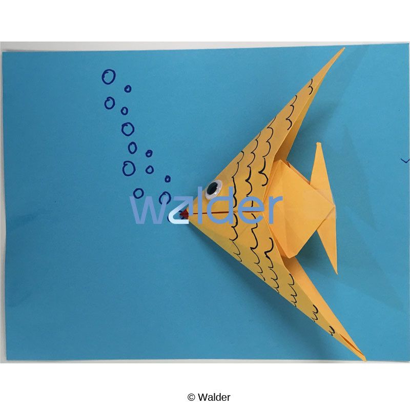 This origami fish may be used to represent the fourth day of creation, when Hashem created the fish and birds. This may also be used to represent kosher fish or a general class on the subject.
