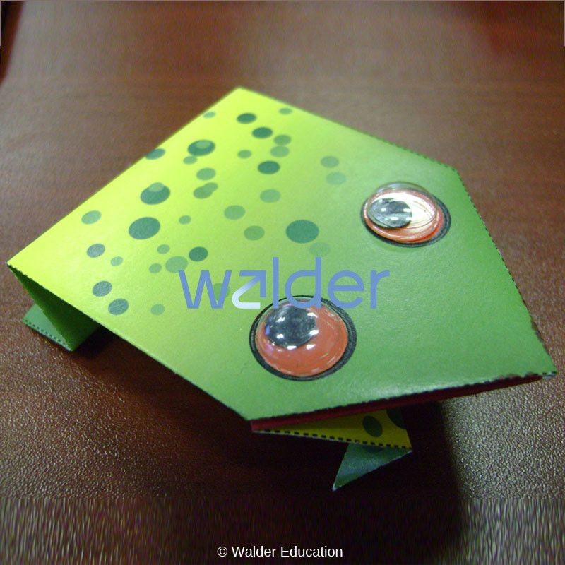 This adorable frog is part of an origami “the seven days of creation” series. It may also be used to represent the Plague of Frogs. This frog is not only cute, but it actually jumps! Press down on the back, release and watch it go.