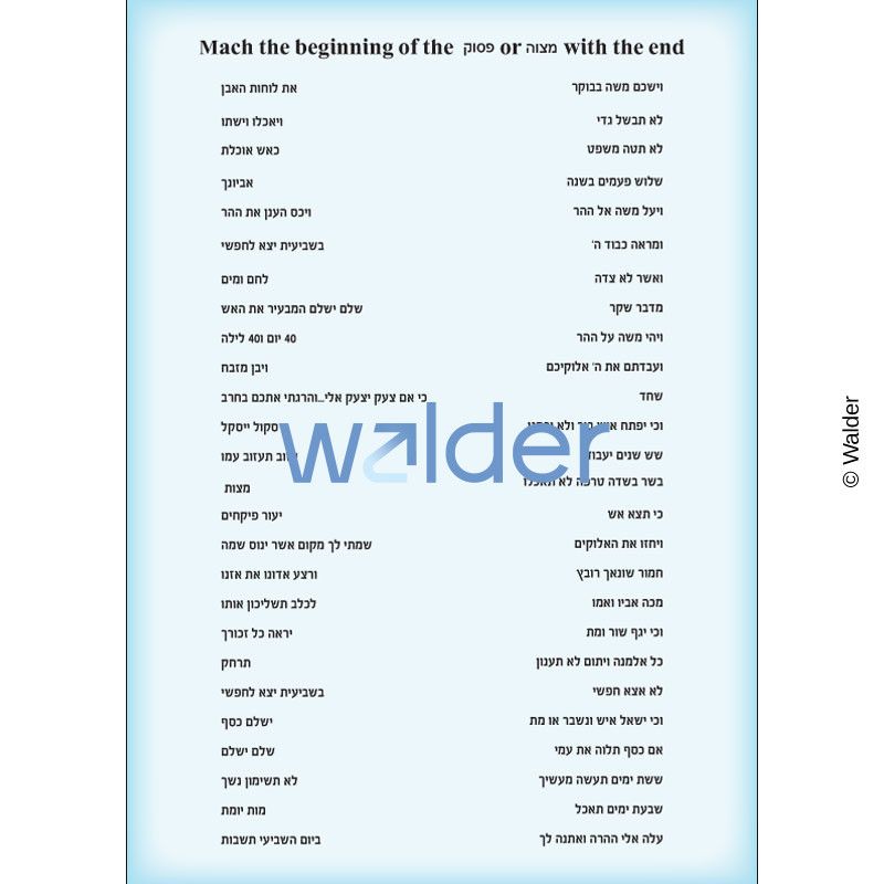 This memory game is an excellent way to reinforce, review and assess the concepts and mitzvos taught in Parshas Mishpatim. After learning Parshas Mishpatim, teachers can play this game with their classes as a review of the mitzvos and pesukim mentioned in the parsha. Either before or after playing the memory game, the students can study and/or test themselves using the enclosed worksheet, on which the students have to match the beginning and end of mitzvos or pesukim to each other.